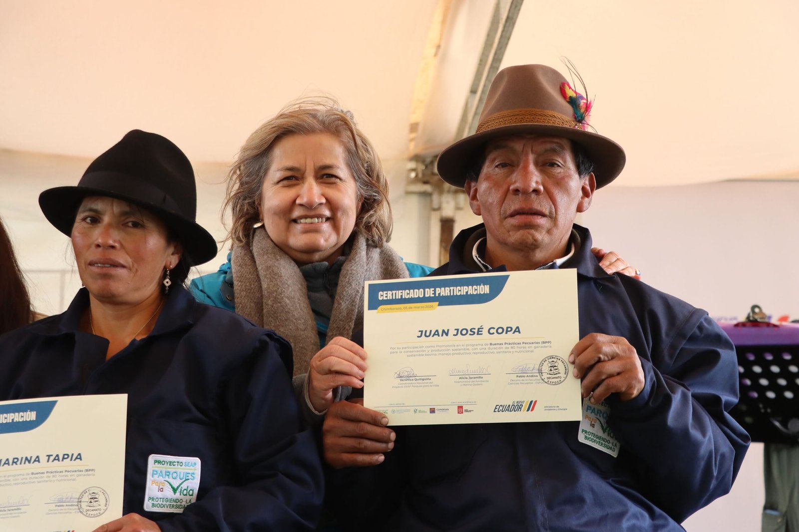 36 promotores y promotoras capacitados por la Escuela Superior Politécnica de Chimborazo (ESPOCH), en el marco del proyecto SEAP Parques para la Vida, actuarán como «guardianes de la biodiversidad local», implementando estrategias como el manejo integrado de suelos, la protección de fuentes de agua y buenas prácticas pecuarias. Estas prácticas permiten mejorar la fertilidad del suelo, capturar carbono y disminuir el impacto ambiental de la ganadería, contribuyendo directamente a disminuir la presión del cambio del uso del suelo por las actividades agropecuarias sobre el Parque Nacional Sangay. La participación de mujeres y jóvenes rurales en este proceso fortalece el liderazgo comunitario y promueve una gestión ambiental más inclusiva y equitativa. Pablo Andino, Decano de la Facultad de Ciencias Pecuarias de la ESPOCH, destacó el valor de la alianza interinstitucional que permitió un proceso formativo de alto nivel, con acompañamiento técnico de docentes e investigadores de la institución.